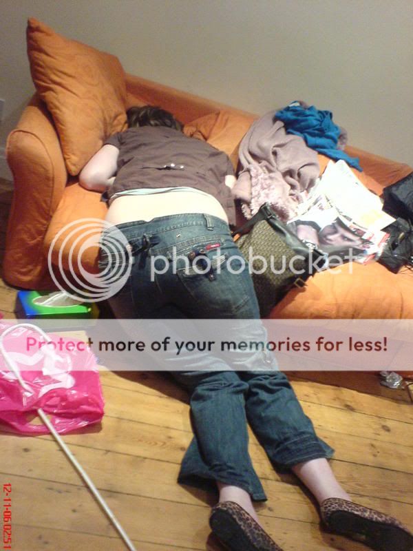 I have just informed Jeni that her chat consisted of "Urrrgh" And thats about it. Plus, about a minute after I had taken the picture there was a muffled "Doon't taaaake pictures of meeee" and then a vain attempt at moving.